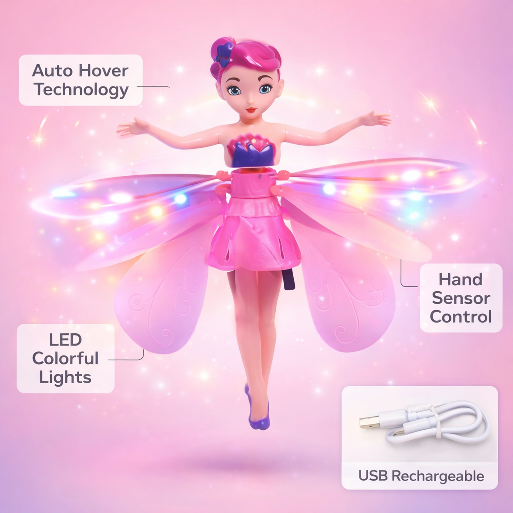 Controlled by Your Hands. You can put your hand underneath to control it in the air for interactive play. Use your hands to guide the fairy doll, flying fairy doll will sense if your hands are high or low. The flying doll will be stationary for 3 seconds to ensure safety when you turn on the switch.